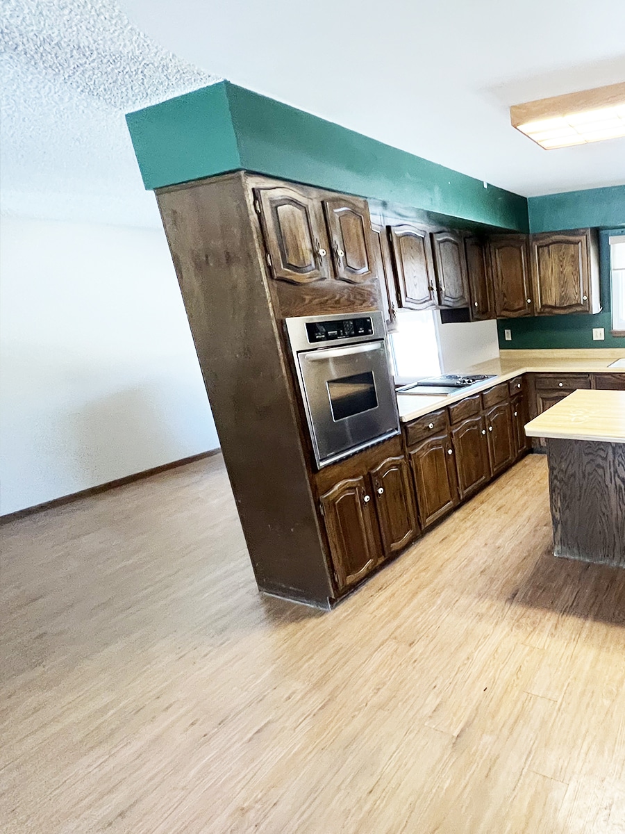 This lovely home in a wooded area was showing its age but had enormous potential for this homeowner to fall in love with her space all over again. Time for a kitchen remodel!